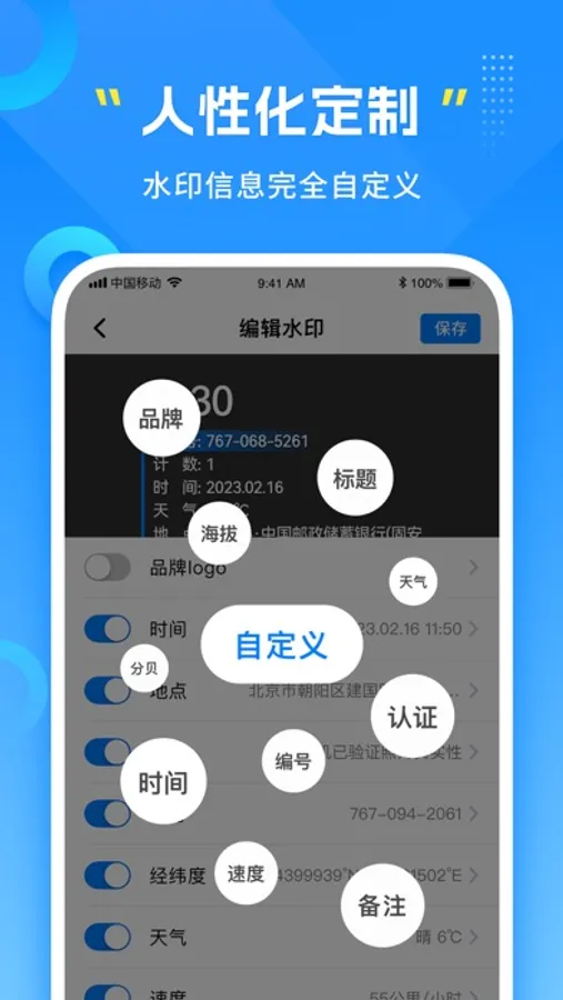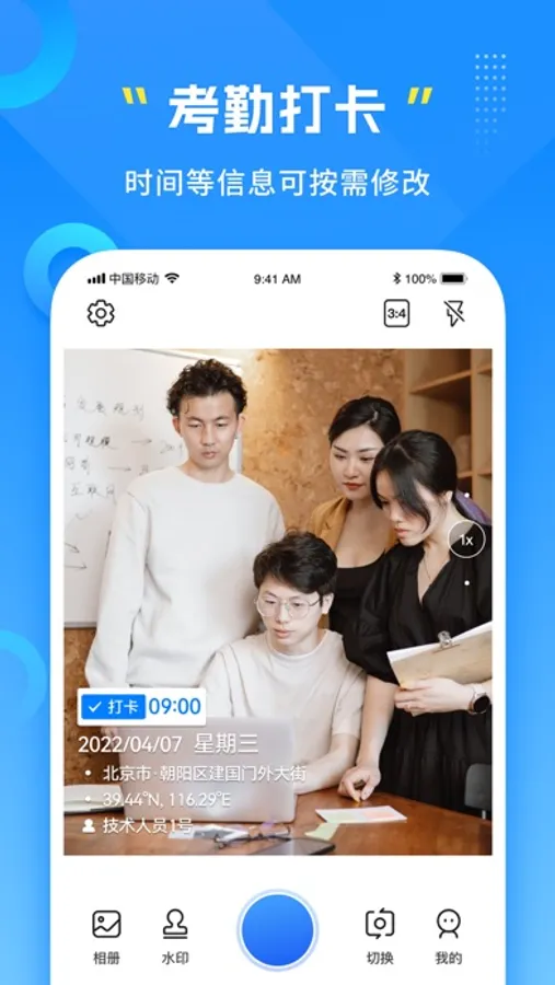 考勤打卡水印、工程记录水印、天气水印、经纬度水印、时间地点水印等多套模板,满足不同相机用户对水印样式的需求