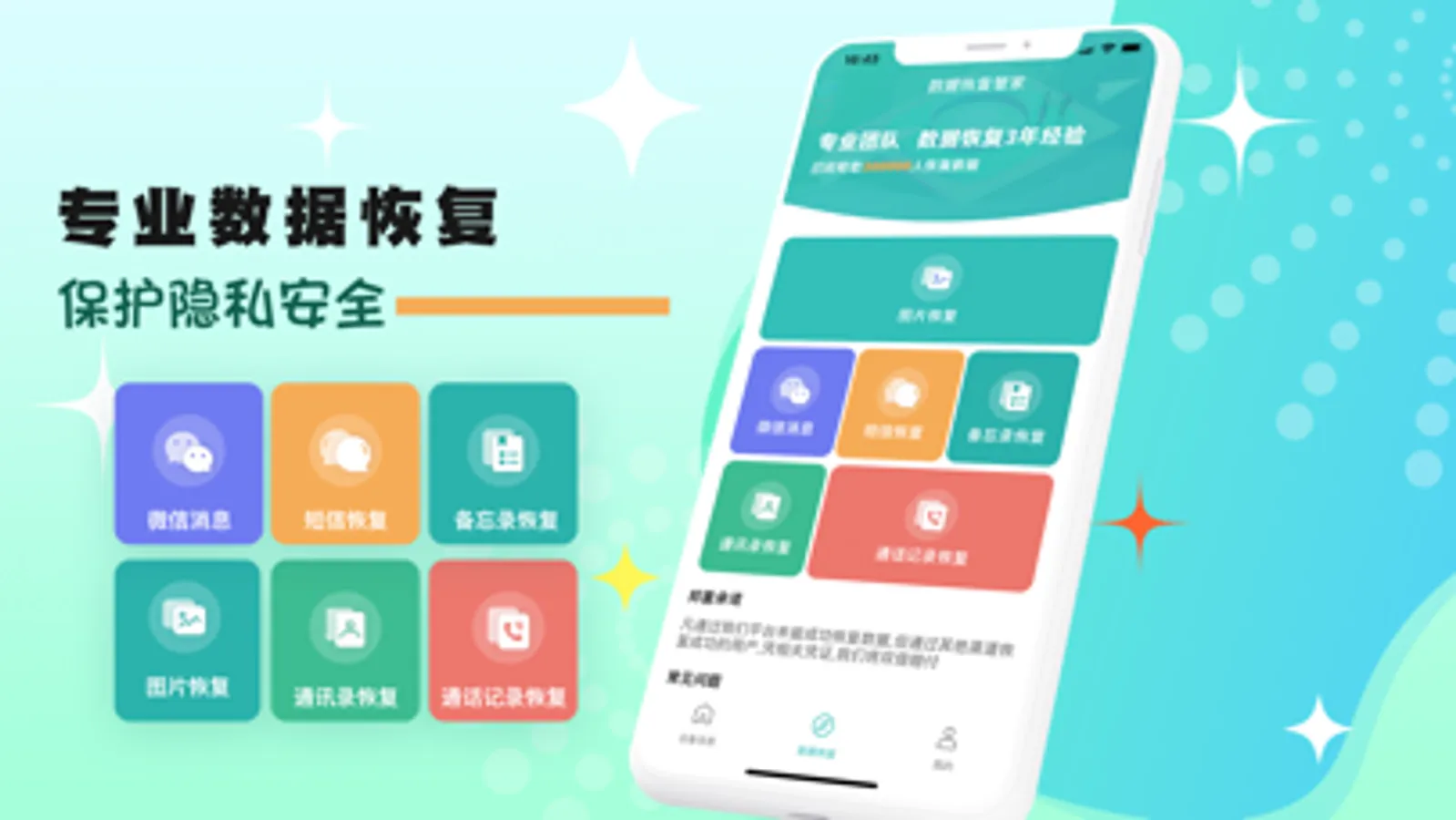 数据恢复管家专业致力于手机数据恢复,可以将手机短信恢复,通讯录联系人恢复、照片恢复,视频恢复,文件恢复,备忘录恢复等等,整个恢复服务过程严格保密,不会泄露用户的任何隐私。