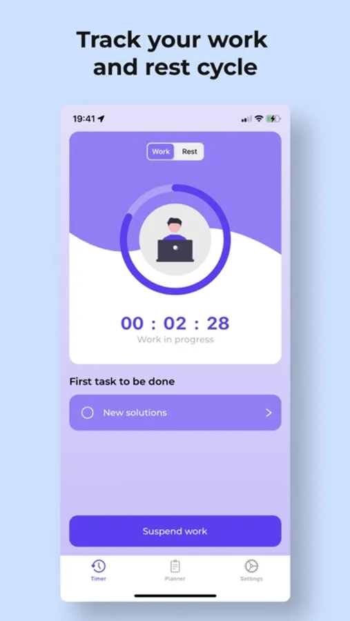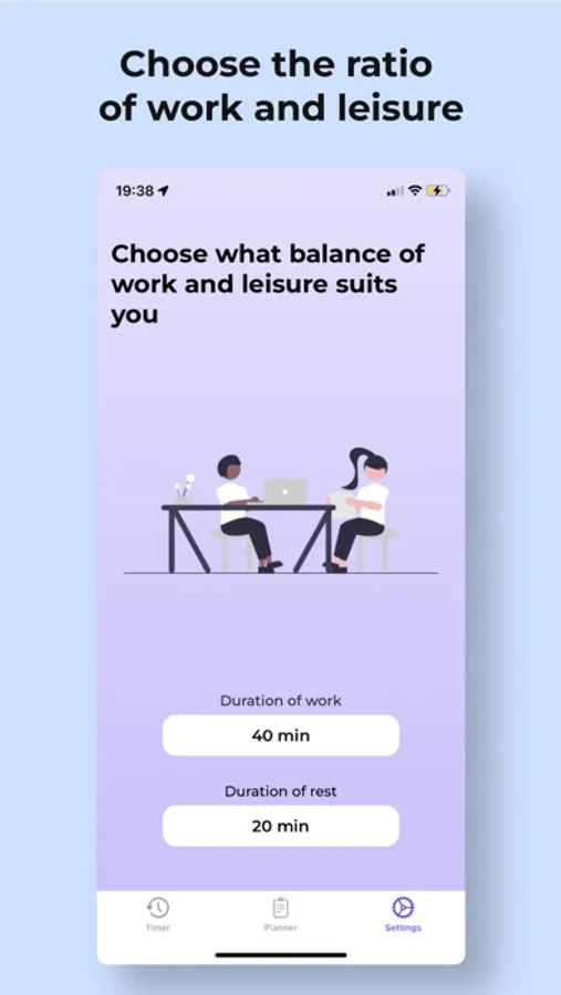 In the application, you can set 2 timers - a rest and work timer. At the end of the time, you will receive a notification prompting you to switch to another mode. This will allow you to spend your time more efficiently.