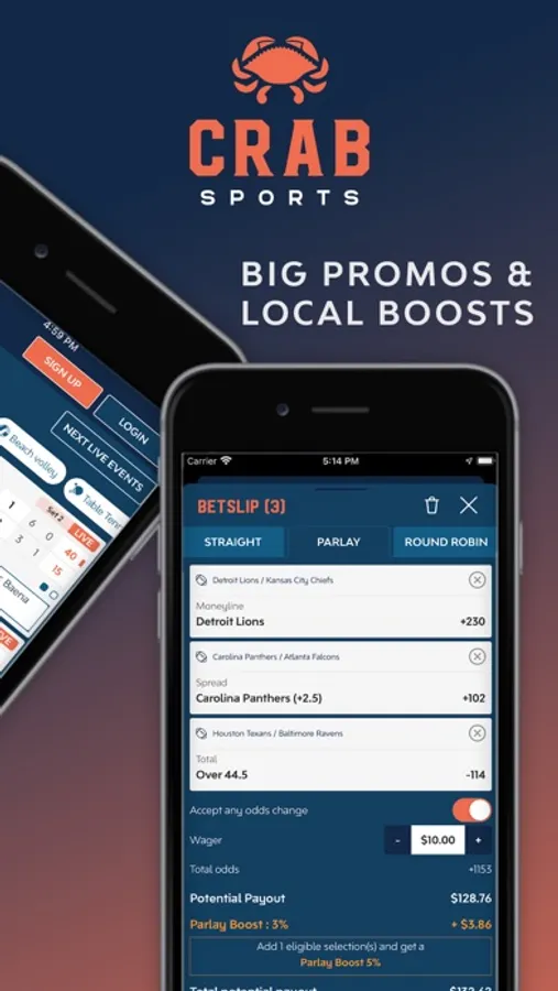 Download Crab Sports now to experience the thrill of sports betting like never before with the premier iOS app designed exclusively for Maryland residents. Place your bets and enjoy an array of features tailored to enhance your betting experience. From cash out options to boosted parlays and an extensive selection of betting markets, Crab Sports delivers the excitement you crave. With lightning-fast deposits and secure, speedy payouts, your winnings are just a tap away!
