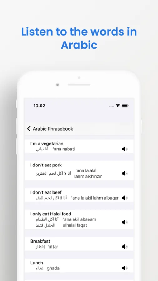 You can listen to each sentence and hear how it is pronounced in Arabic so that you can practice the pronunciation and improve your accent.