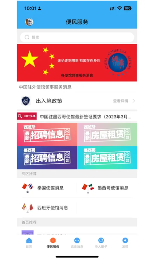 - 便民服务:华人华侨留学生免费发布租房,求职,二手,大学,法律,店铺,新闻,移民留学等信息*也会有驻外使馆等官方信息发布。