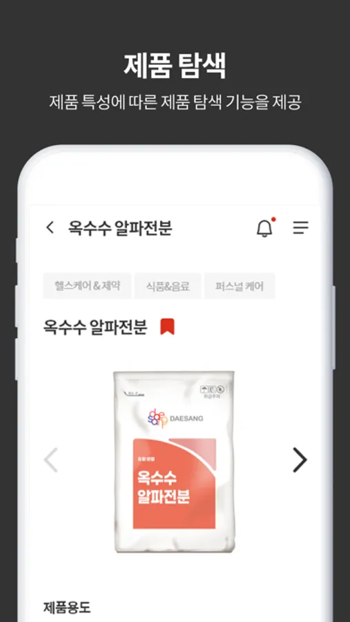 ◆ 제품 탐색고객의 업종과 용도에 따른 제품 탐색, 원하는 제품 특성에 따른 제품 탐색 기능을 제공합니다. 관심 제품을 북마크 해두고, 담당자에게 문의를 등록할 수 있습니다.