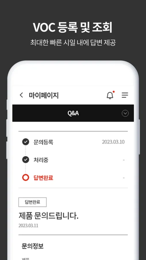 ◆ 고객문의 등록 및 조회제품에 관련된 문의사항이 있으신가요?