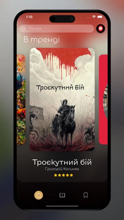 Наразі в застосунку доступні книжки та твори таких авторів: Григорія Косинки, Кирила Поліщука, Тані Поставної, Назарія Заноза. Згодом колекція буде поповнюватися.
