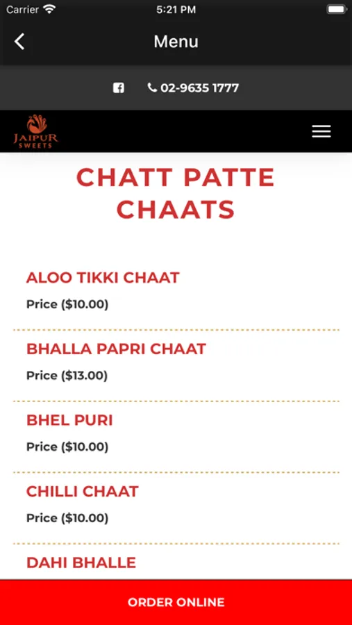 You can order online from us by clicking the ORDER ONLINE button and we will deliver our delicious food directly to your front door.