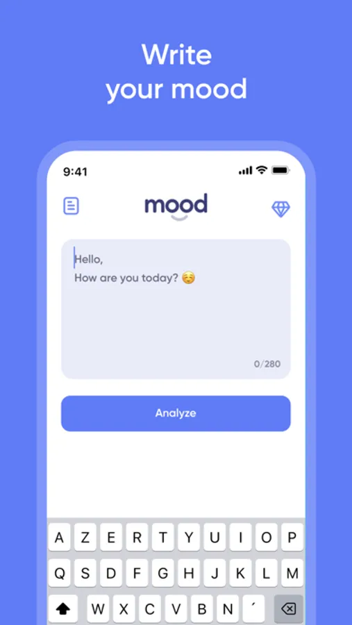 Mood is designed to be easy to use. Simply enter your mood in the app and you'll get an analysis in under 5 seconds :)