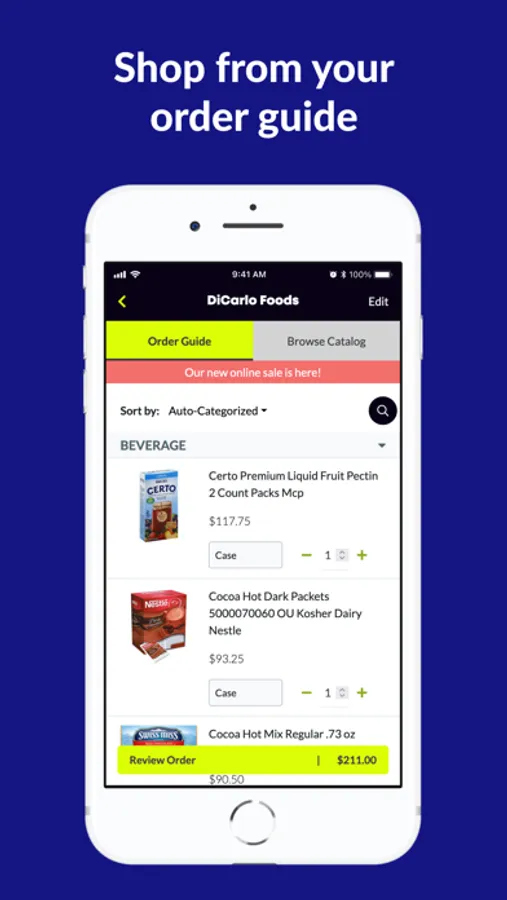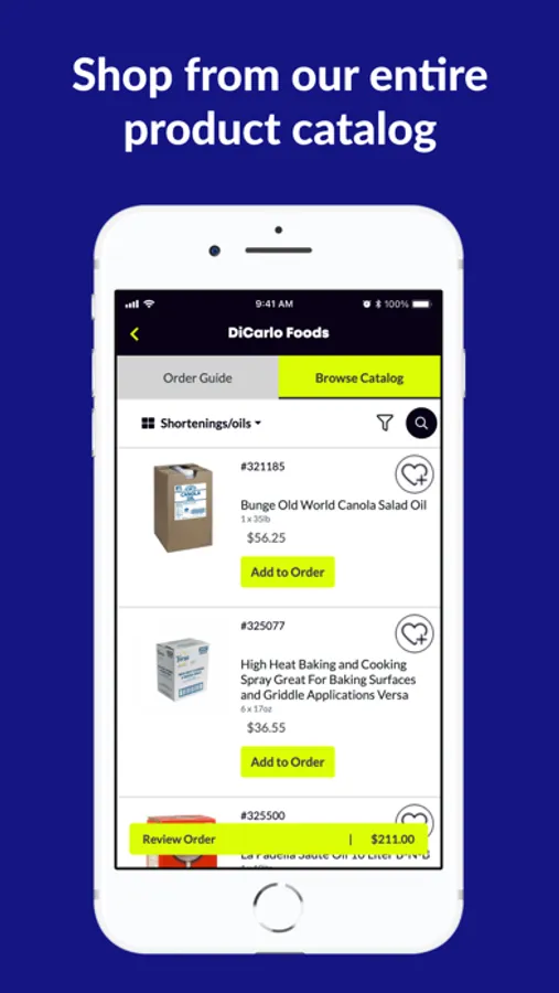 * Shop our entire product catalog with item photos and rich attributes including nutritional info
