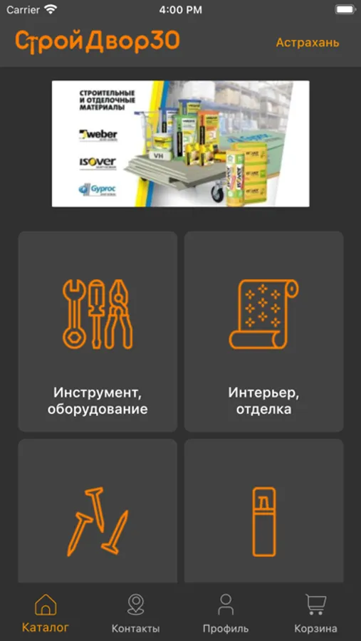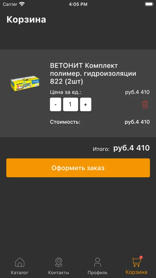 1) В быстрой и удобной форме оформить заказ на доставку стройматериалов