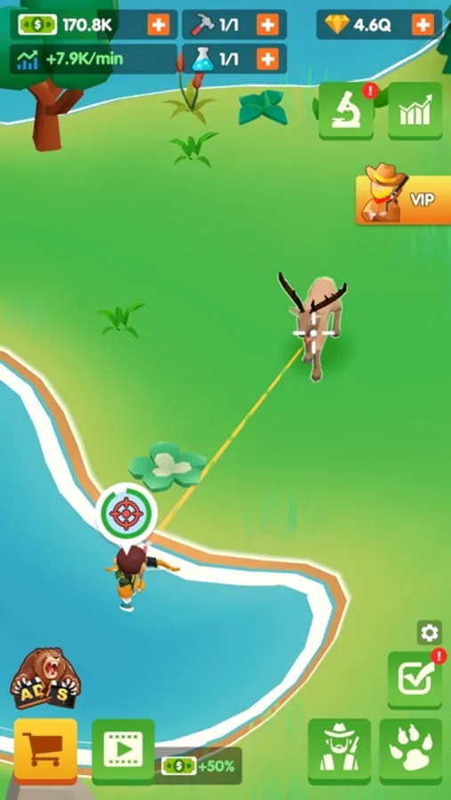 Don't forget to upgrade your money vault. The profits of the hunting tycoon are stored here. Make sure you increase its capacity to be able to accumulate more money!