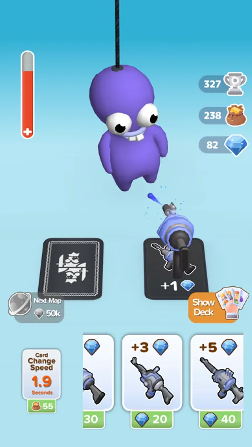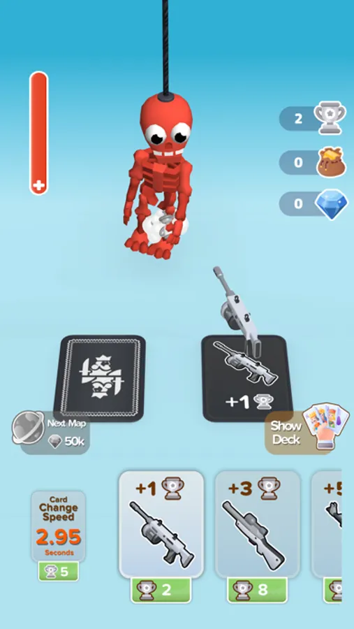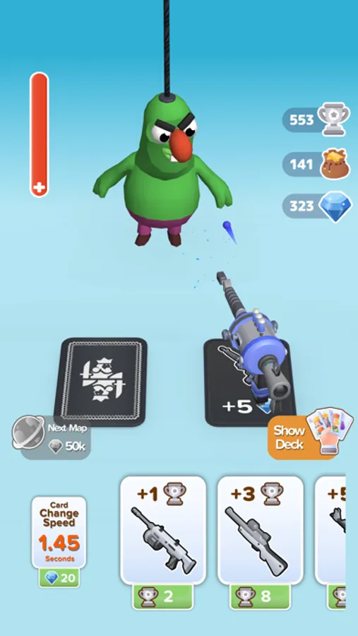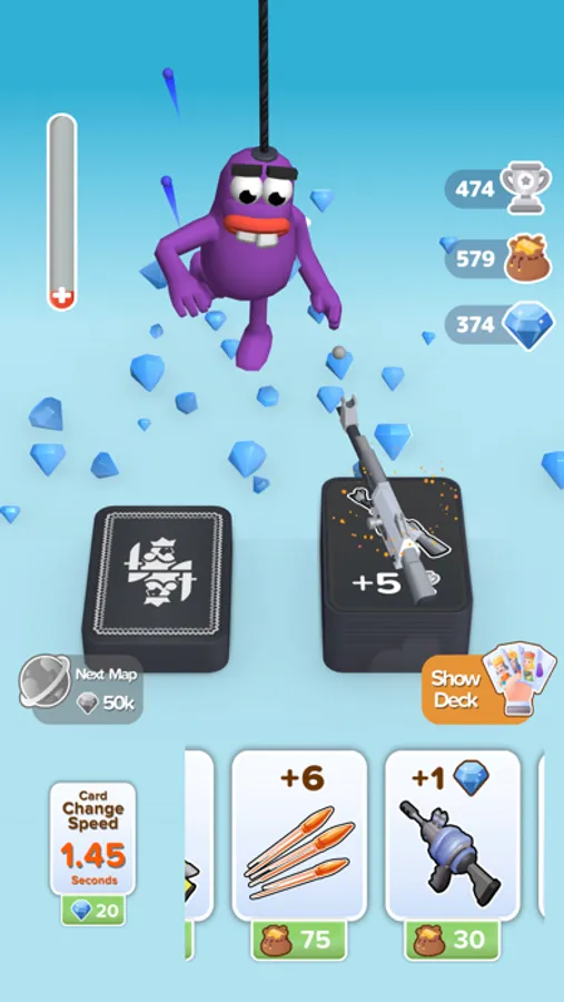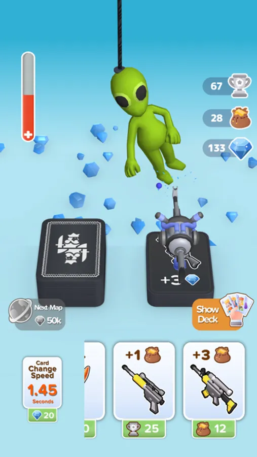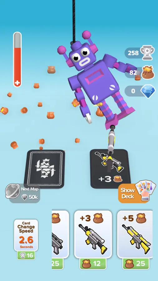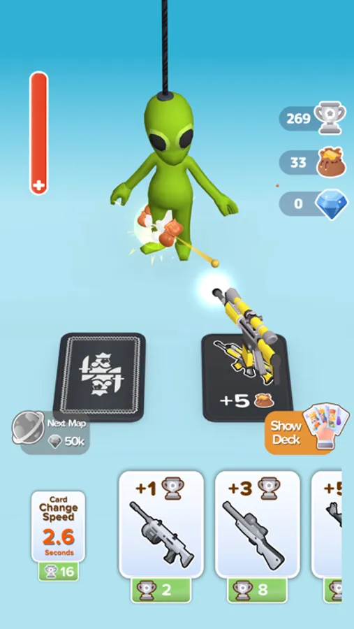 Shuffle your deck of cards, reveal a new card to hit the enemies that come your way. The next gun card would be more powerful or not. Find the best weapon for the weak points of the enemies. If you are lucky, the following gun card could be more powerful.