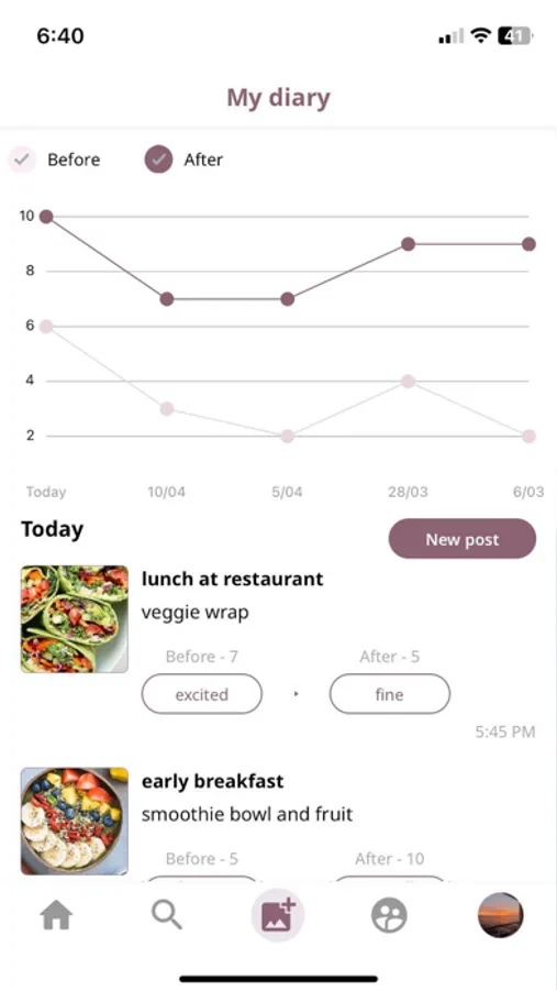 daily munch is a personal food and feelings diary that can be used as a tool to help eating disorders. While most food-tracking apps are calorie-focused, our app connects eating with emotional and mental well-being. Through recording daily reflections and “before and after” feelings involving food, users are encouraged to view their food choices holistically. These helpful observations and reflections allow users and medical professionals to look for patterns and associations that can be incorporated into eating disorder treatments. If wanted, users can connect and share their reflections with a support group or friends.