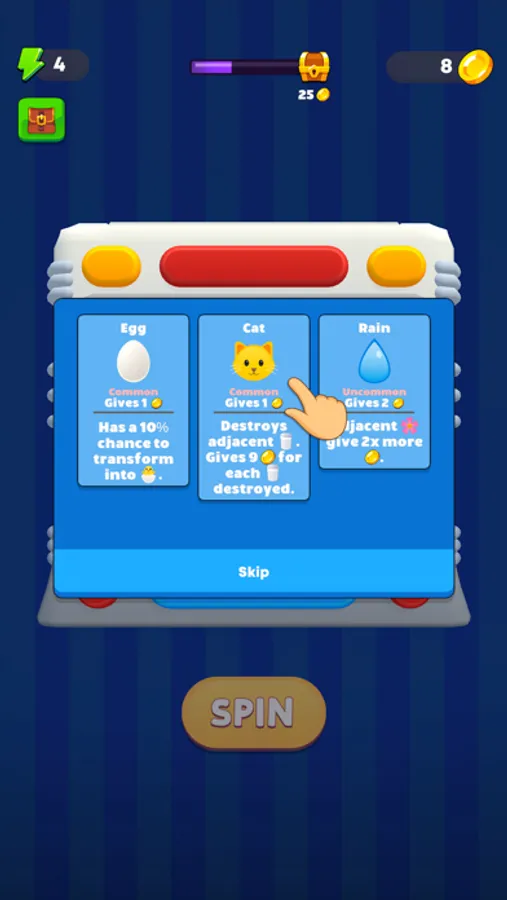 Earn enough coins. Each level requires you to earn a certain number of coins. Pick your symbols and maximize your bank to advance. How many levels can you pass?