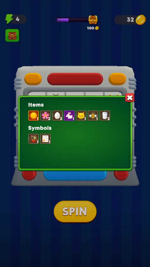 Unlock additional slots and reels by spending money. Consider your purchases carefully: it may be valuable to open the machine gradually as you collect symbols.