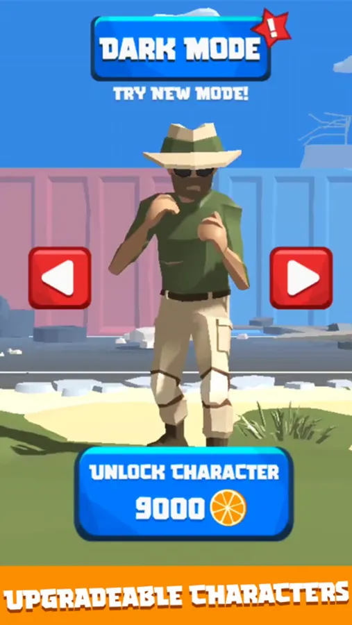 Fight against enemies and bosses, open boxes to discover and equip new weapons, collect oranges, upgrade your character!
