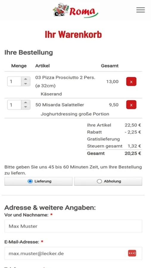 Pizza Roma Burgkirchen ist eine App von StayAtHome für schlaue Lieferdienste.