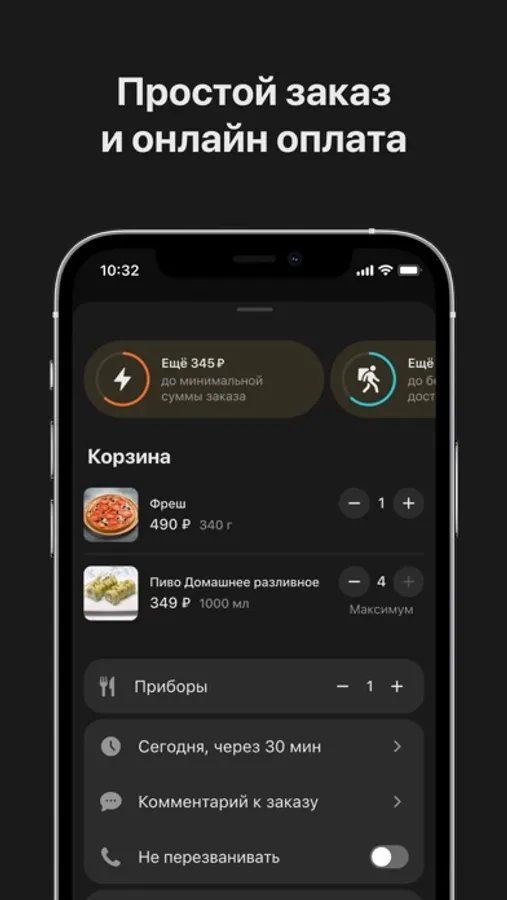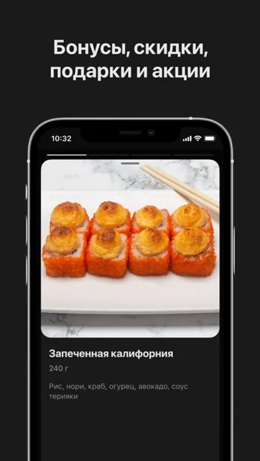 Выгодно: у нас удивительная система скидок и бонусов — вы получите скидку к первому заказу, сделанному через приложение, а далее — у вас будет вкусный подарок к каждому третьему заказу. Также у вас будут копиться бонусные рубли — которыми вы сможете оплачивать до 30% стоимости ваших будущих заказов