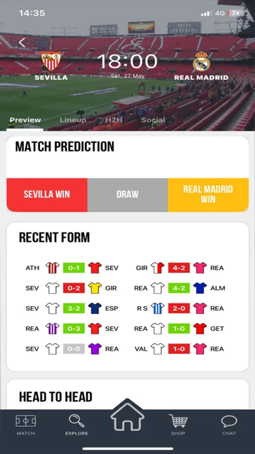 Matchday build-up, featuring head-to-head stats, match predictions and team news. Live match alerts, line-ups, commentary, in-depth stats, player ratings, top social tweets, and fan reactions.