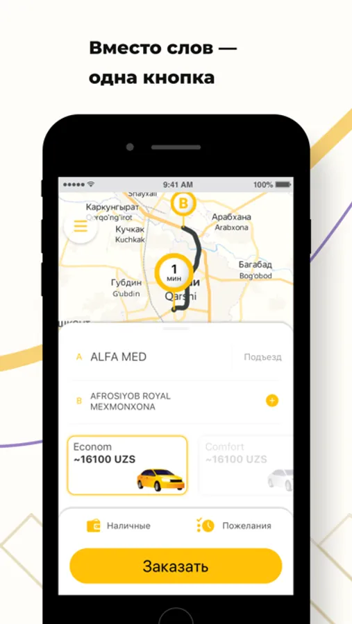 Qarshi : Bir zumda taksi buyurtma qilishni istaysizmi ?
