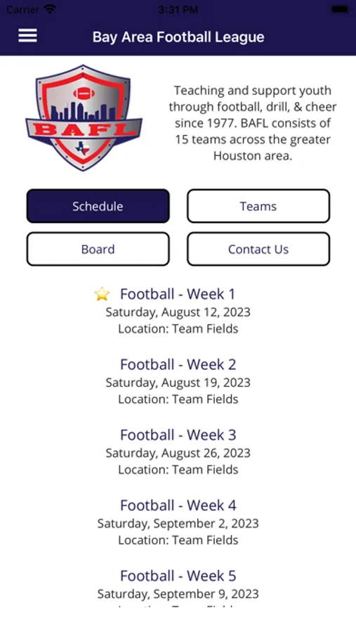 This is the official app of the Bay Area Football League (BAFL). The app lets parents, players, and volunteers keep up with league information, contacts, scores, and competitions. Useful all season long, but a must-have for BAFL competitions.