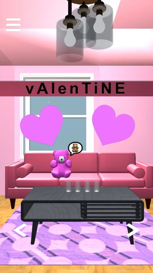 恋するクマさんたちとバレンタインの装飾がされた部屋から脱出しよう。