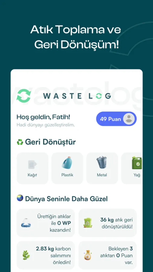 Not: Waste Log, kişisel verilerinizi gizli tutar ve çevresel etkinliklerinizi paylaşmanız tamamen isteğe bağlıdır.