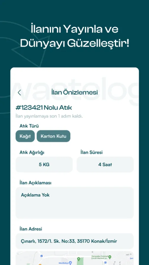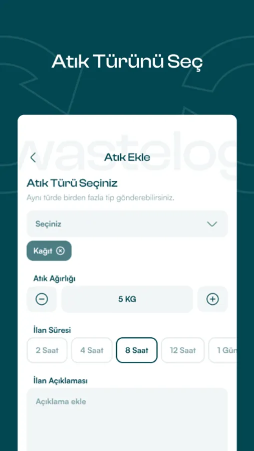 Geri Dönüşüme Katkıda Bulunun: Waste Log, atıklarınızı lisanslı geri dönüşüm firmalarıyla buluşturarak geri dönüşüme katkıda bulunmanızı sağlar. Bu sayede atıklarınız yeni ürünlere dönüşür ve doğal kaynakları korur.