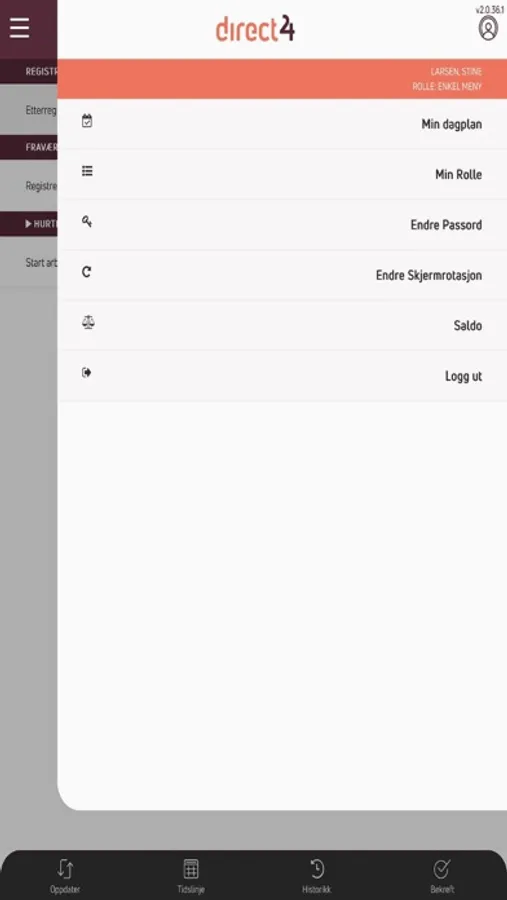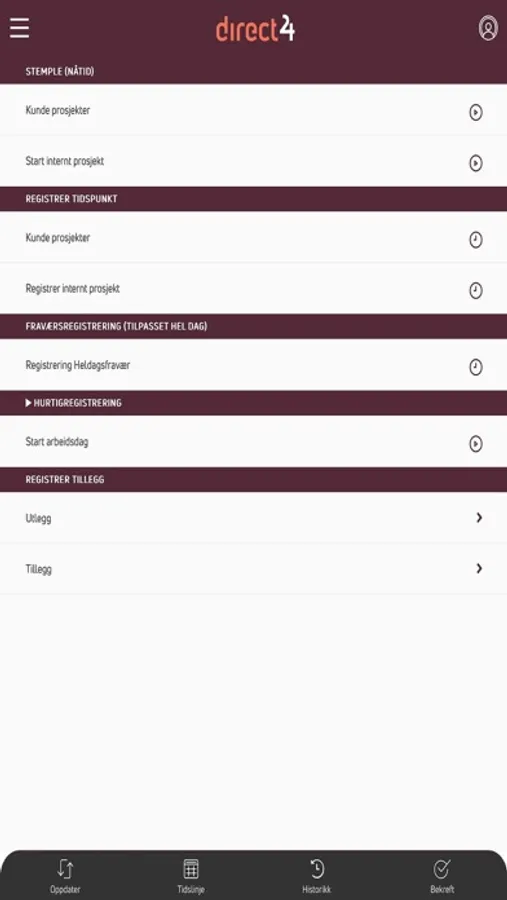 App-meny tilpasses brukerens ønsker og behov, les mer om programmet på https://direct24.no/