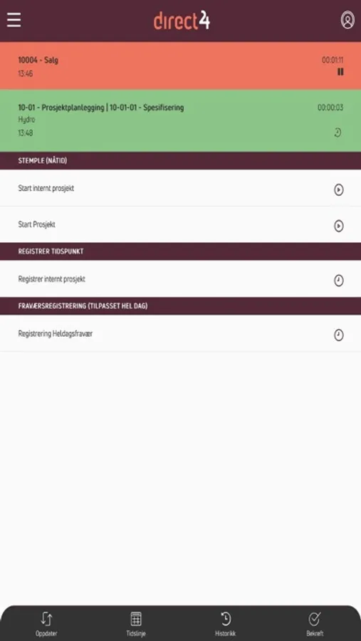Med bruk av appen kan timer registreres mot arbeidsoppgaver, avdeling, aktiviteter, kunder og prosjekter. Det er også mulig å registrere kostnader og tillegg som knyttes til prosjekt. Timene beregnes automatisk og sendes