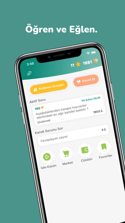 Kullanıcılar Günlük Soru sayesinde hem Kazanırken hem de Eğlenirler. Gün içinde keyifli bilgiler öğrenerek kazan! Referans sistemi sayesinde bu uygulamanın vereceği bilgilerden sunacağı ödüllerden arkadaşların/ailen de faydalanabilir. Hemen KATIL, SORULARI CEVAPLA, EN ÇOK SEN KAZAN !