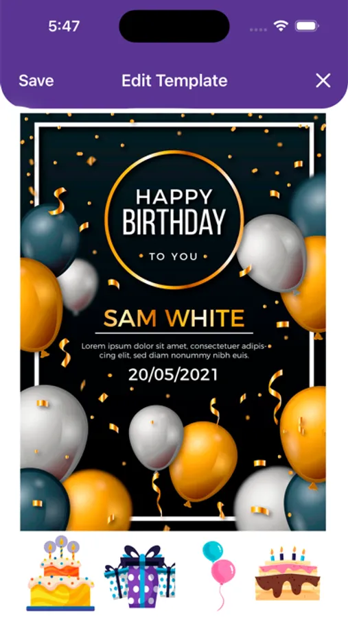 Party invitation card maker - Design Invitations for Event comes with the following features: