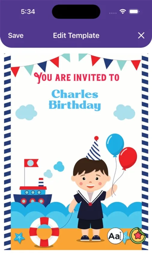 Add text to your selected images, creatively design cards free, and share it with people you want to join your on party through birthday party invitation maker.