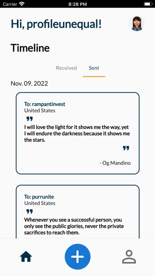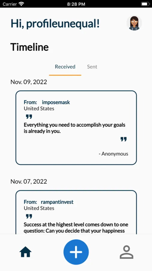 Sangha Social is the Anti-Social Media Positivity App. Our mantra is the "Be the Change You Want!" so we created an app to spread positivity and goodwill to the world. You can send motivational quotes or affirmations to a random person in the world making their day infinitely brighter which in turn helps make the world a little bit kinder. In turn, you will receive message(s) from other random people which will help put a smile on your face.
