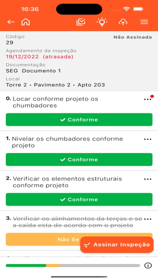 Qualquer projeto que precise de controle de não conformidades terá sua inspeção padronizada através de perguntas agrupadas em um checklist, de acordo com o definido previamente pelo auditor/supervisor.