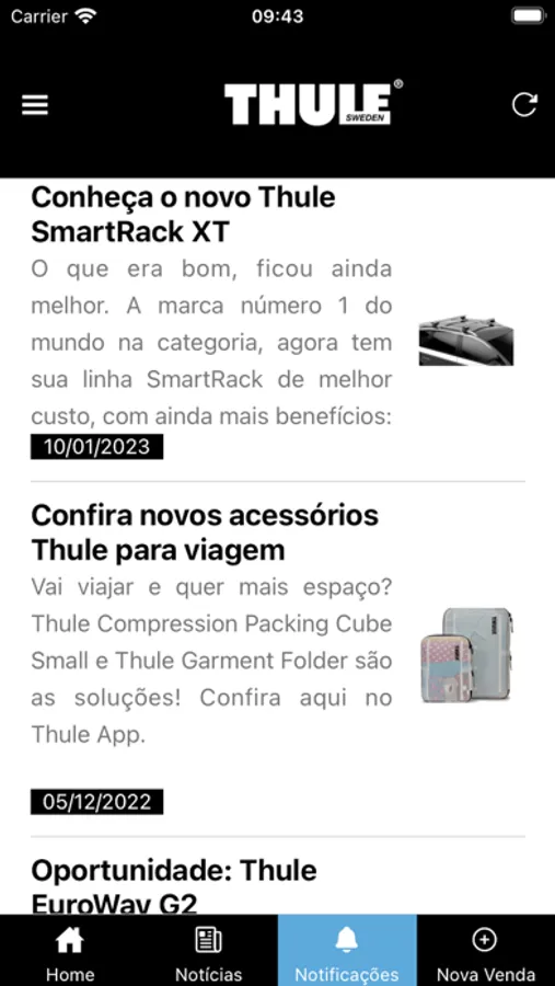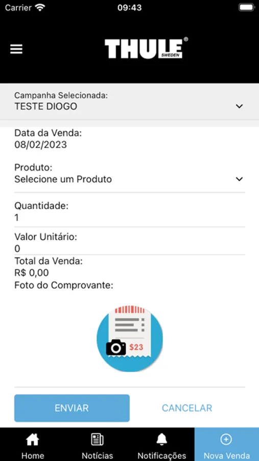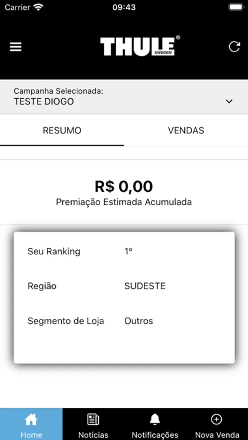 Aplicativo da Thule Group Brasil para Incentivo de Vendas utilizado por usuários autorizados pelo departamento comercial da Thule Group Brasil.