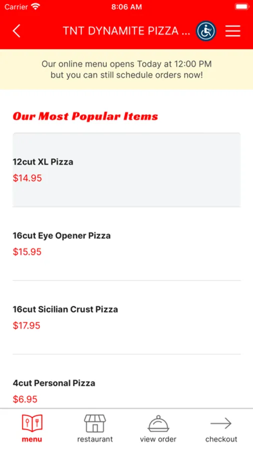 Order from TNT Dynamite Pizza. Now you can save and reorder, save custom menu items and order with a snap!