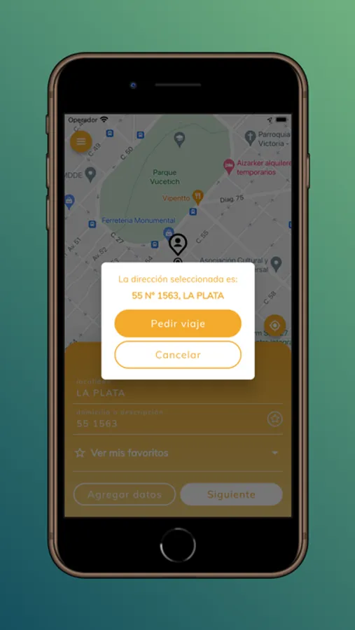 - Solicitud de viajes desde una ubicación elegida sobre un mapa o carga manual de calles.
