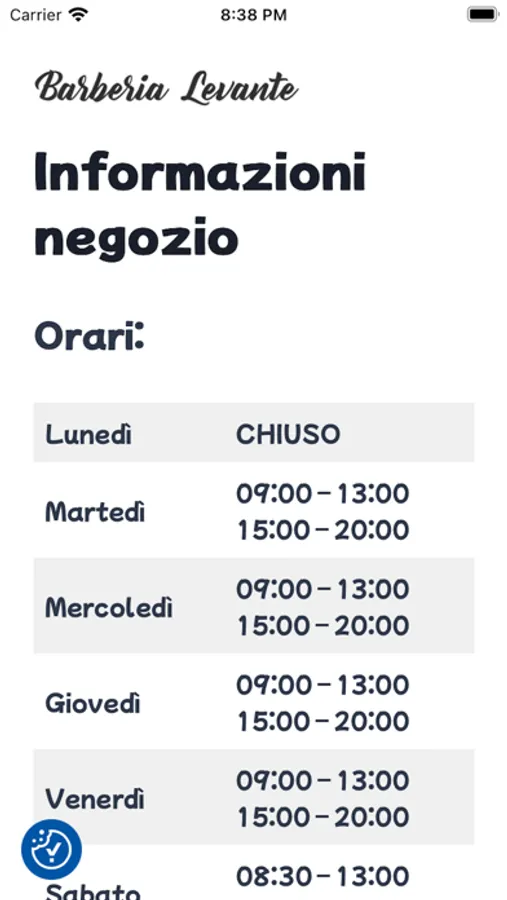 Questa app è dedicata a rappresentare il negozio Barberia Levante per visualizzare informazioni ed effettuare prenotazioni.