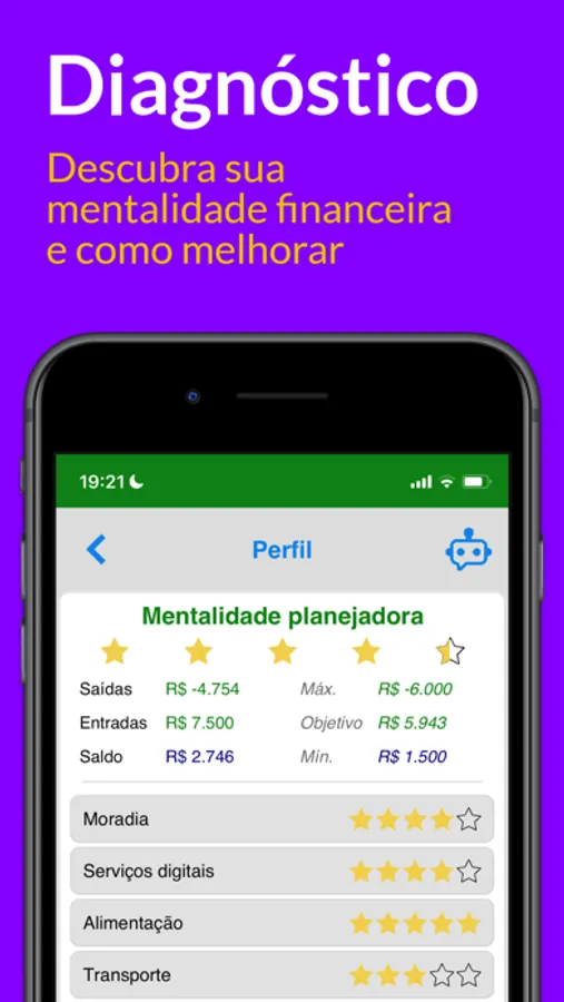 • Acompanhe seu progresso e veja como você está se saindo em relação ao seu orçamento e metas financeiras