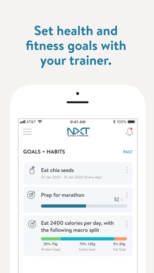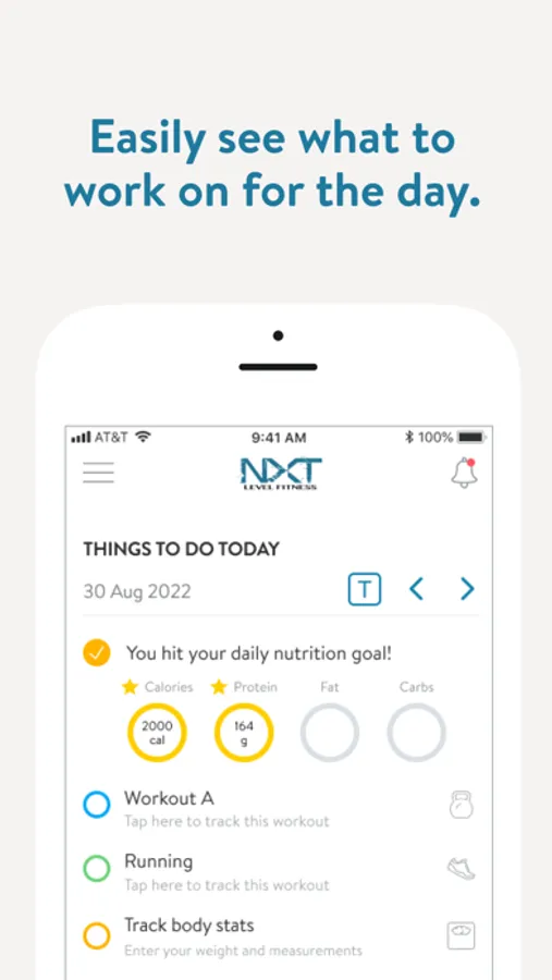 With the NXT Level Fitness App, you will have access to workout programs designed specifically to help you reach your fitness and health goals! You can follow & track your workouts, your nutrition, your lifestyle habits, measurements and results–all with the help of your coach.
