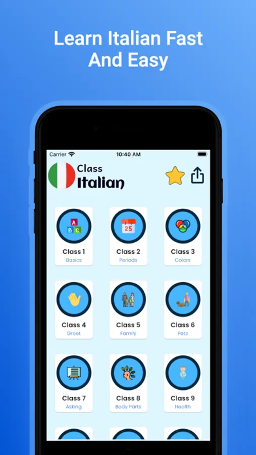 Complete Italian Language learning course from basics to advance level and for beginners. Our app lets you learn Italian language within two months of durations if you are really serious to learn Italian. There are hundreds of different categories available in the app include daily life important phrases of Italian language. There are thousands of Italian words and phrases as well as also Italian sentences available in the app.
