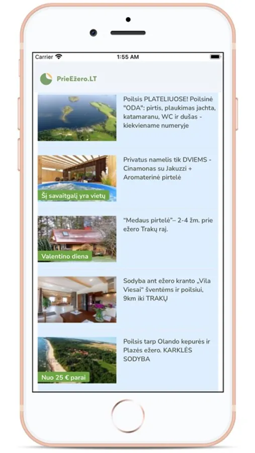 Internetinis katalogas PrieEžero.LT skirtas ieškantiems poilsio ir švenčių vietų Lietuvoje. Čia pateikiama daugiau nei 1000 kaimo turizmo sodybų, apgyvendinimo, nakvynės ir švenčių paslaugų teikėjų. Kataloge rasite, kur praleisti savaitgalį ar atostogas nuostabioje mūsų šalies gamtoje. Taip pat išsirinksite sodybą, dvarą, pokylių salę vestuvėms, krikštynoms, gimtadieniui ar kitai šventei.