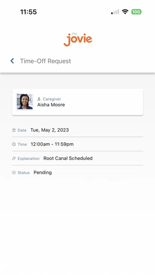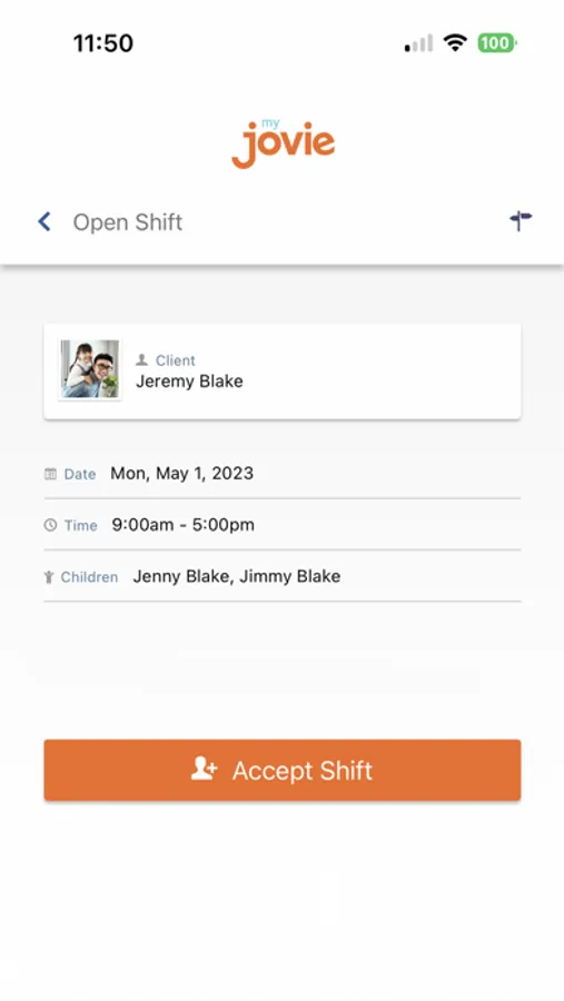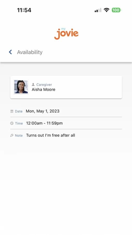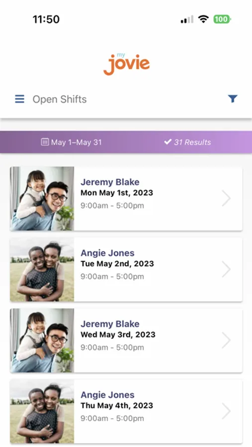 The My Jovie™ app makes managing and scheduling in-home childcare easy. Families can find and schedule sitters for on-demand childcare right from their phones. They can use the My Jovie app to message and share tasks and pictures with their caregivers.