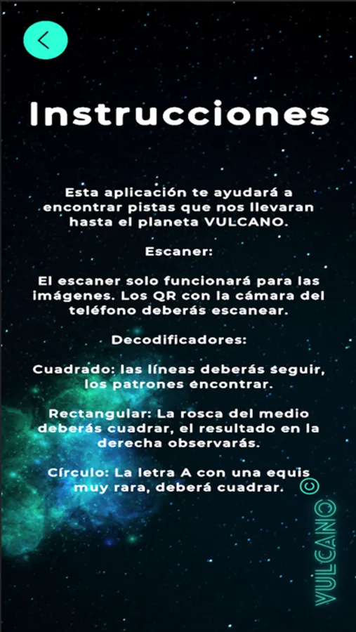 Esta aplicación te ayudará a encontrar pistas que te llevarán hasta el planeta VULCANO.