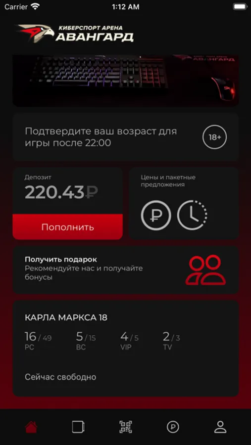 Приложение для компьютерного клуба "Киберспорт Арена Авангард".