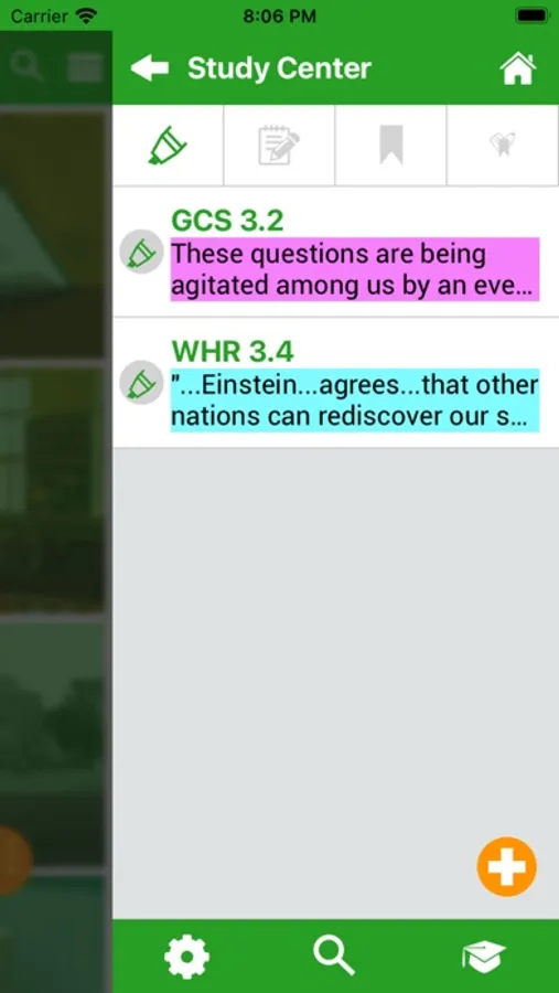 * Study Center: Bookmarks, Highlights, Notes