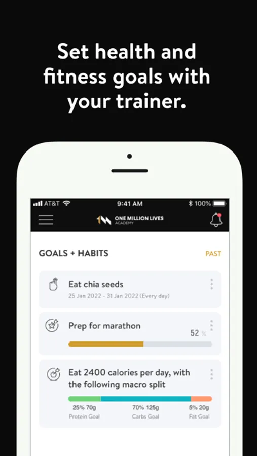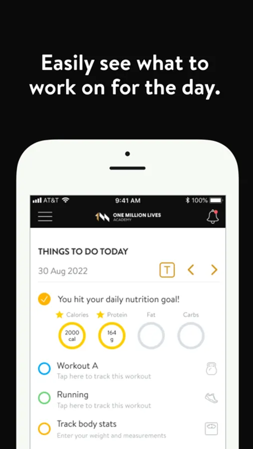 With the One Million Lives Academy App, you will have access to workout programs designed specifically to help you reach your fitness and health goals! Each of your workouts are unique to you and your fitness goals. We want you to feel as if you have a great in person trainer with you every step of the way. You can follow & track your workouts, your nutrition, your lifestyle habits, measurements and results–all with the help of your coach.