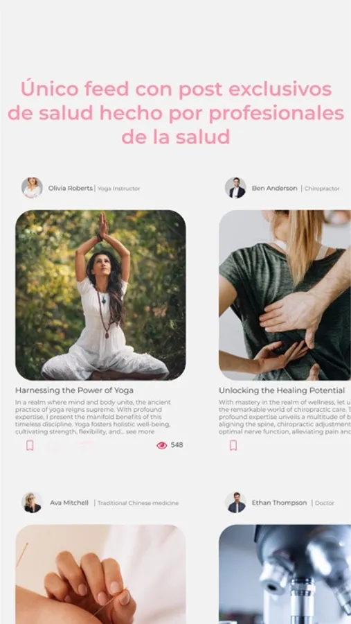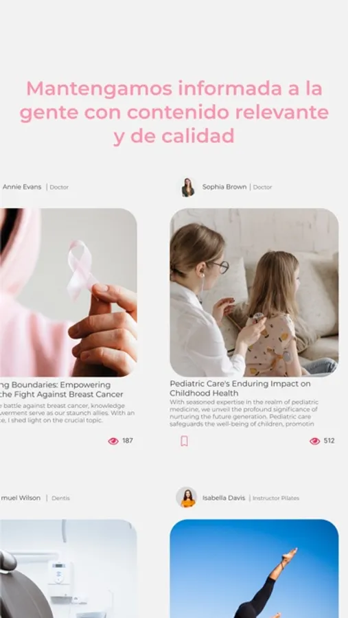 Feed de información confiable: Mantente actualizado y bien informado con nuestro Feed, donde podrás acceder a contenido relevante y confiable sobre salud y bienestar. Desde consejos de expertos hasta noticias y tendencias, estarás al tanto de todo lo que necesitas para llevar una vida saludable y equilibrada.