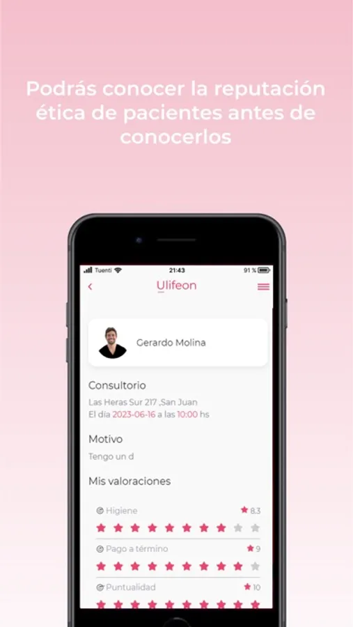 Experiencia personalizada: Creemos que cada paciente merece una experiencia de salud única y personalizada. Con Ulifeon, puedes utilizar nuestra función de búsqueda avanzada para encontrar profesionales de la salud que se ajusten perfectamente a tus necesidades y expectativas. Tú eres el centro de atención y nos aseguraremos de que así sea.