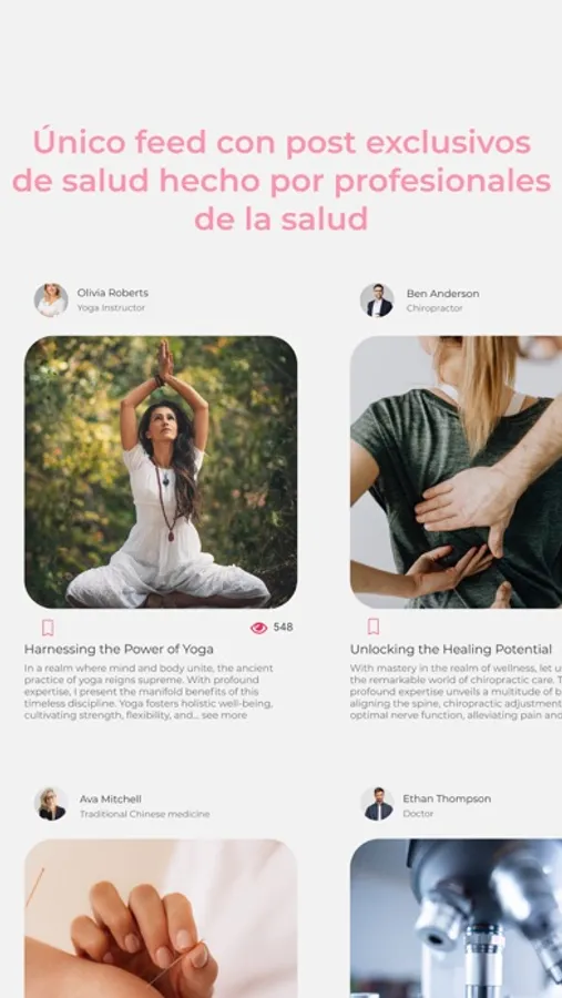 Feed de información confiable: Mantente actualizado y bien informado con nuestro Feed, donde podrás acceder a contenido relevante y confiable sobre salud y bienestar. Desde consejos de expertos hasta noticias y tendencias, estarás al tanto de todo lo que necesitas para llevar una vida saludable y equilibrada.